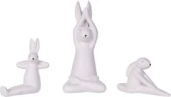 Clayre & Eef Beeld Konijn 15x13x37 Cm Wit Roze Polyresin Woonaccessoires Pasen Paashaas Wit Woonaccessoires Pasen
