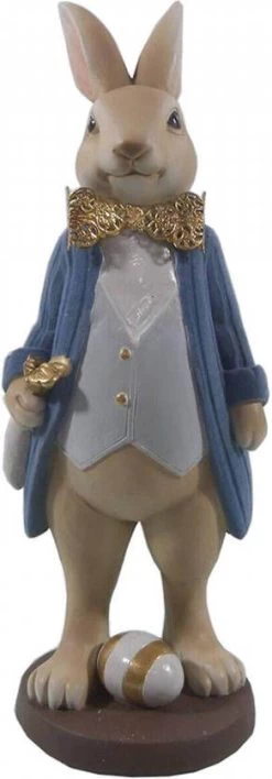 Clayre & Eef Beeld Konijn 11x11x30 Cm Blauw Polyresin Woonaccessoires Pasen Paashaas Blauw Woonaccessoires Pasen