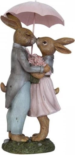 Clayre & Eef Beeld Konijn 17x15x34 Cm Roze Kunststof Woonaccessoires Beeld Decoratie Paashaas Roze Woonaccessoires