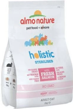 Almo Nature Cat Holistic Sterilised 2 kg Kattenvoer Zalm&Rijst Sterilised direct bestellen in onze webshop! Almo Holistic sterilised is een droge, voedzame en licht verteerbare brok voor je kat. Het heeft minder calorieën en dus ideaal voor gewichtscontrole van de gesteriliseerde kat. Bereid met vers vlees zonder toevoegingen van kunstmatige kleurstoffen en conserveringsmiddelen. Het is een gezonde brok met een lage vetpercentage en een combinatie van granen die vakkundige gekozen zijn. Zo voldoet Almo Holistic optimaal aan de voedingsbehoeften van je gesteriliseerde kat.. Alle Almo Nature voor uw Kat uit voorraad leverbaar!.