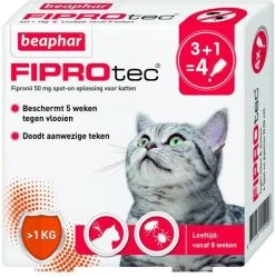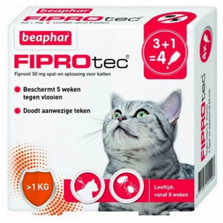 Beaphar Fiprotec Cat Anti Vlooien En Tekenmiddel 3+1 Pip >1kg
