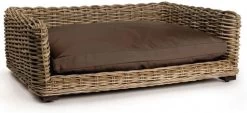 Gun je hond ook het plezier van languit op de bank liggen met deze honden sofa. De grof gevlochten sofa is gemaakt van kubu riet en voorzien van een donkerbruin kussen. Afmetingen: lengte: 68 cm breedte: 53 cm hoogte: 28 cm.