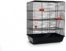 Rattenkooi remy Deze rattenkooi Remy is een kooi met zeer fijne tralies, voorzien van 4 verdiepingen. Inclusief 3 metalen trapjes, drinkflesje en 2 voederbakjes. Een schitterende strak afgewerkte moderne kooi. Specificaties: Afmeting(en): 58 x 38 x 7.