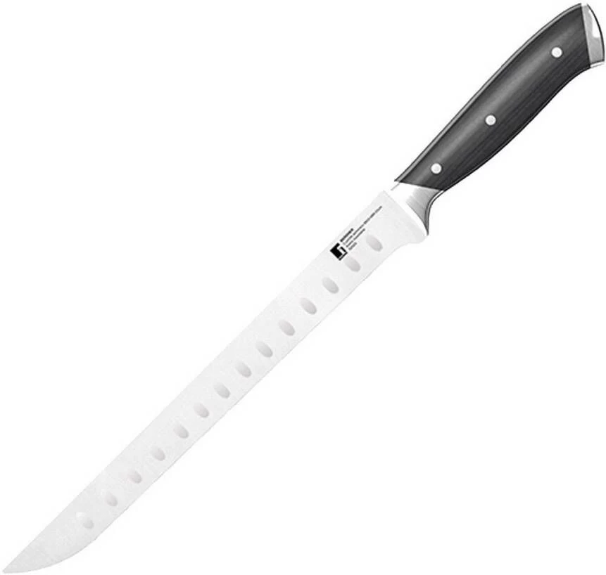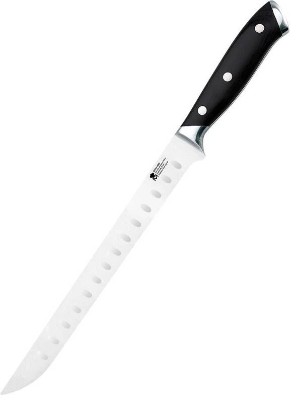- Dit hammes heeft een lang lemmet met kuiltjes zodat de ham niet aan het mes blijft kleven