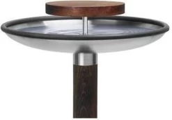 Fuera vogelhuis en waterbak van Blomus. Dit mooie designstuk is vervaardigd van roestvrijstaal en staat op een houten paal. Het is een mooie toevoeging aan de tuin en is 133 cm hoog.