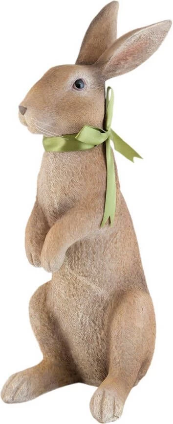 Beeld van een bruin konijn met een groene strik van het merk Clayre & Eef. Woonaccessoires beeld decoratie PaashaasProductinformatie: