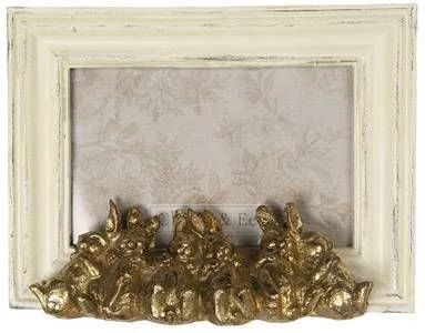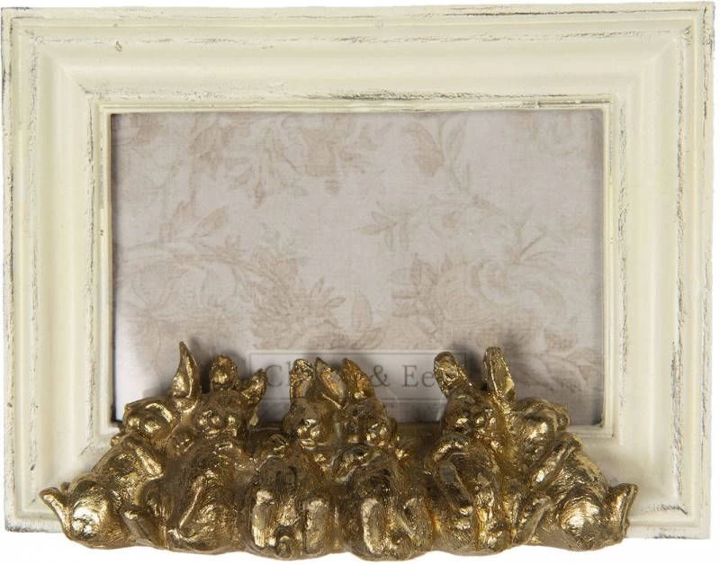 Witte rechthoekige fotolijst met gouden konijntjes met een romantische stijl van het merk Clayre & Eef. Afmeting lijst 20*4*15 cm Fotokader Wissellijst Foto Frame Bestel Clayre & Eef Fotolijst 10×15 cm Wit Kunststof Rechthoek Konijnen online bij fonQ. Alle Clayre & Eef Fotolijsten uit voorraad leverbaar. Voor 23:59 besteld, morgen in huis.