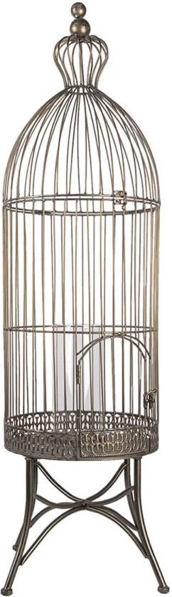 Grijze landelijke metalen vogelkooi / windlicht in de afmeting Ø 30*107 cm. Decoratie vogelkooi Vogelkooi HangendProductinformatie: