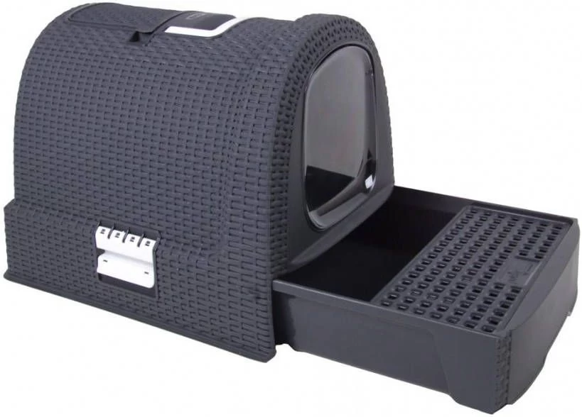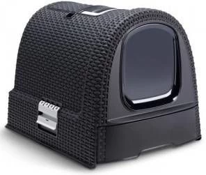 Curver kattentoilet, in de kleur antractiet, van het oersterke materiaal rattan.