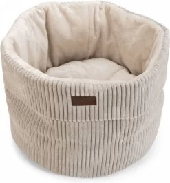 Desgined by Lotte Ribbed kattenmand is de perfecte combi tussen ligcomfort en de trendy ribstof. De kussens zijn gevuld met siliconenvezel, waardoor uw kat nog zachter ligt. Door de rand van de mand om te vouwen, kan de hoogte van de mand bepaalt worden. Het binnenste kussen is uitneembaar, aan de onderkant van de kattenmand is er een antislip laag bevestigd.
