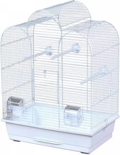 De Vogelkooi Dara wit van Flamingo is geschikt voor kleine parkieten. De kooi wordt geleverd met 2 voer- en drinkbakjes en 3 zitstokken.