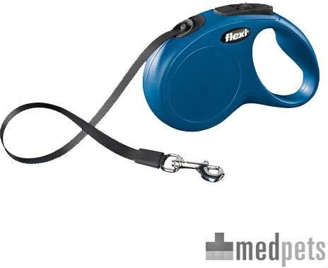 Flexi Rollijn New Classic Tape Medium 5 m Hondenriem Blauw Tot25kg direct bestellen in onze webshop! Veilig en comfortabel wandelen met je hond