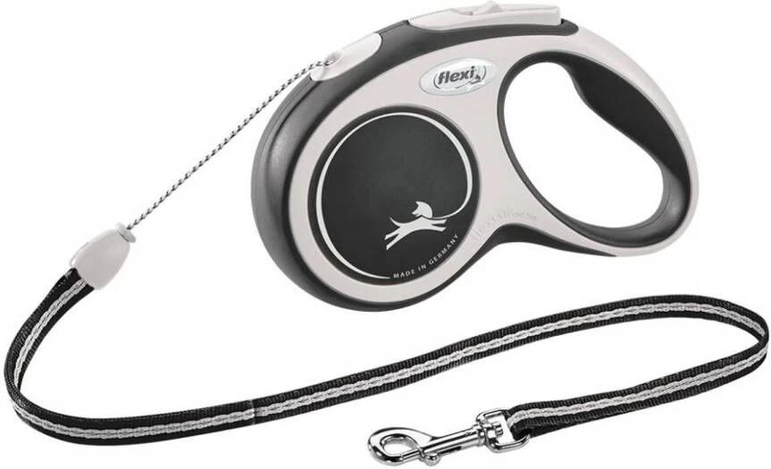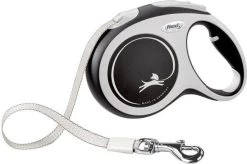 Bij Flexi kan je kiezen tussen lijnen met een koord en lijnen met tape. Het is een persoonlijke voorkeur welke variant je het fijnst vindt. In principe zijn beide soorten even sterk en veilig om te gebruiken. De New Comfort Tape bevat een tape.