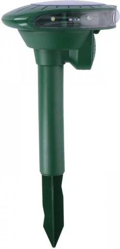 Deze elektronische, op zonne-energie lopende ongedierteverjager is veilig voor mens en huisdier, maar insecten, mollen en ratten slaan er van op de vlucht. Geen schadelijke afweermiddelen meer nodig! Hij maakt gebruik van geluidsgolven op ultrasone frequentie (22-65 kHz) en drijft zo bepaalde diersoorten weg uit de tuin zonder ze te doden. Honden en katten hebben er geen last van. Meestal duurt het zo’n 3 à 4 weken voordat het effect merkbaar is.