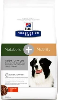 Hill&apos, s Prescription Diet Metabolic + Mobility Weight + Joint Care Zak Kip Hondenvoer 4 kg direct bestellen in onze webshop! Let op: geef dit voer alleen in overleg met je dierenarts! Het betreft een veterinaire voeding.