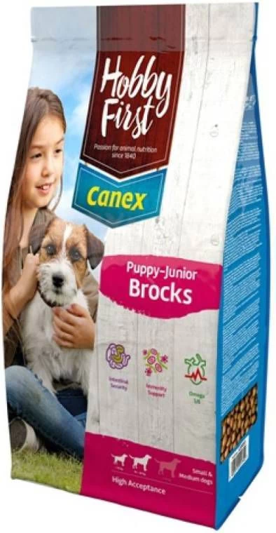 HobbyFirst Canex Puppy-Junior BrocksEen complete en uitgebalanceerde voeding voor (opgroeiende) pups en junior honden van kleine en medium rassen. * Intestinal Security * Immunity Support * Omega -3/-6.