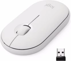 Logitech Pebble M350 Optisch Draadloos Muis Maak elke ruimte minimalistisch, modern en stil met Logitech Pebble de draagbare muis die past bij uw samengestelde levensstijl en overal mee naartoe gaat. De gladde organische vorm past in je broekzak, tas en ligt heerlijk in de hand.