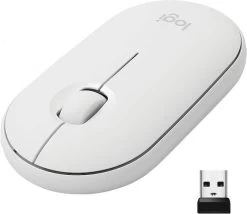 De Logitech Pebble M350 Bluetooth Muis Wit is een moderne, dunne en stille draagbare muis. Verbind je muis met je laptop of pc via Bluetooth of de kleine USB-ontvanger. De Logitech Pebble Bluetooth Muis Wit gaat 18 maanden* mee op één AA-batterij zodat je je geen zorgen hoeft te maken over een lege batterij. *Batterijlevensduur kan variëren afhankelijk van gebruik. 2.