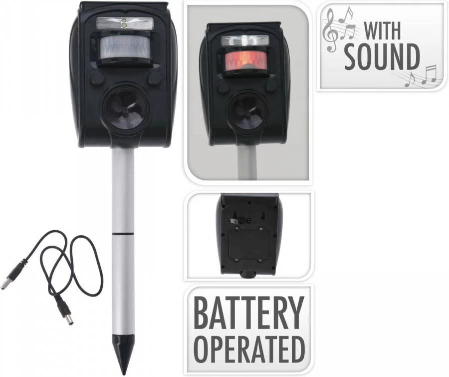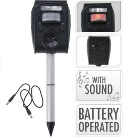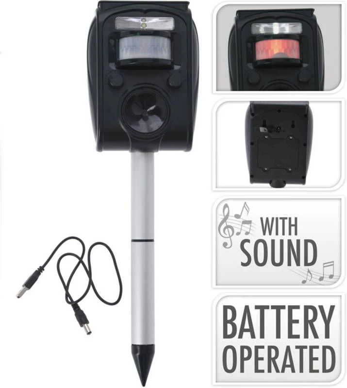 Praktische dierenverjager die je helpt als je overlast hebt van bv katten, vogels, honden of konijnen. Zodra de dieren in het bereik van de bewegingsmelder komen worden ze d.m.v. een pieptoon op hoge frequentie weggejaagd. Extra handig is dat dit model werkt op zonne-energie, tevens is er een USB-kabel meegeleverd voor thuis opladen.