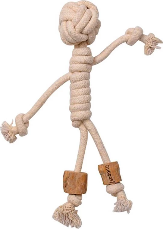 Quapas! Dog Toy Coffeewood Pupa- Afmeting: 34x26x6cm Leuk hondenspeelgoed gemaakt van koffieboom dus ook geschikt voor honden met allergieën. Koffieboom is 100% natuurlijk en naast goed voor het gebit, ook goed voor de darmen. Het speeltje is duurzaam, onbewerkt, cafeïnevrij en bevat geen toevoegingen. Dit speeltje splintert niet. Door de bal in het touw is dit speeltje gemakkelijk vast te houden wanneer de hond eraan trekt.