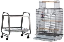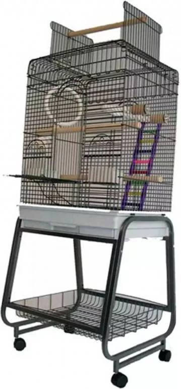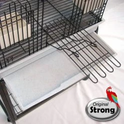 Doordat de kooi van zijn onderstel gehaald kan worden is deze ook ideaal te gebruiken als tweede kooi voor bijvoorbeeld vakanties en andere reizen.De papegaaienkooi is voorzien van een kunststof lade en kunststof bakjes. De voordeur gaat door middel van een schuifmechanisme open. Voor het perfecte beeld kunt u de video bekijken op het volgende tabblad. Tevens vindt u alle specificaties en gedetailleerde afmetingen in het uitklapmenu hiernaast.