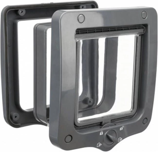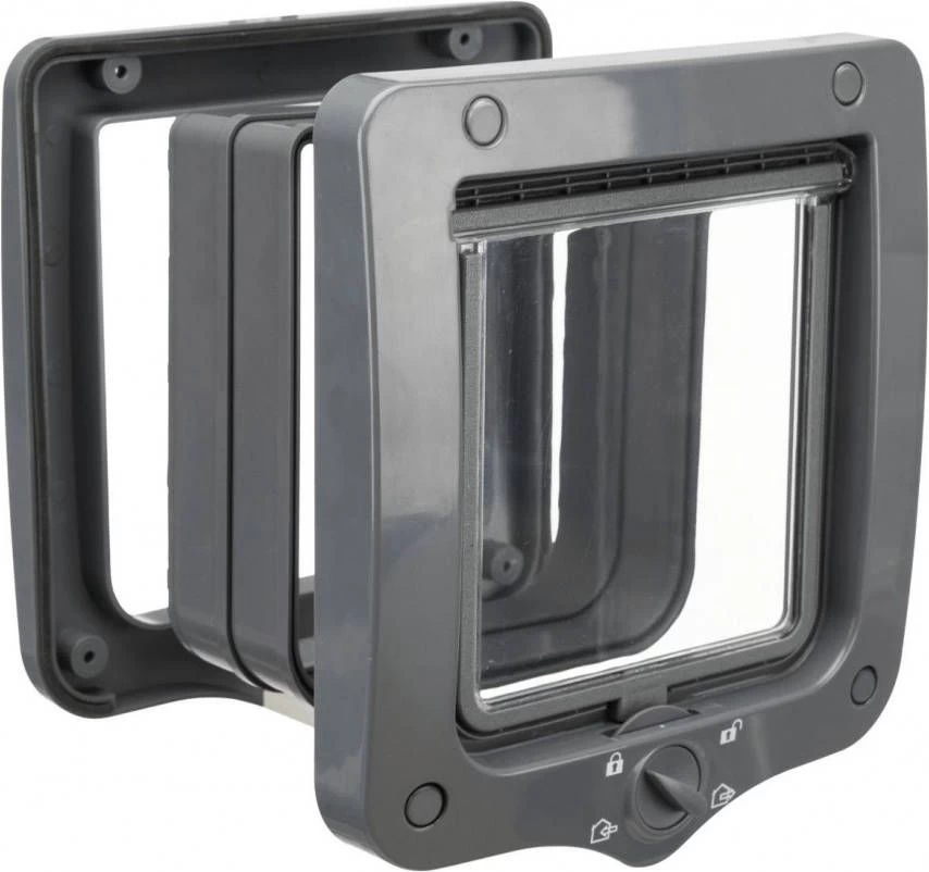 Trixie 4-weg Kattenluik met Tunnel is een handig kattenluik om te plaatsen in muren en dikkere deuren. Het kattenluik met transparante klep wordt geleverd met 1 tunnelelementen en heeft een inbouwdiepte van minstens 20 mm. Het kattenluip kan desgewenst uitgebreid worden met meer tunnelelementen. De klep van het kattenluik van Trixie is geluidsarm en heeft een magneetsluiting. Het huisdierenluik is gemakkelijk in verschillende standen in te stellen, bijvoorbeeld als het kattenluikje gesloten moet blijven.