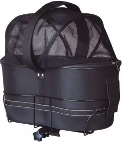 Deze fietsmand is gemaakt van vormvast EVA. Het stevige metalen frame zorgt voor veilig vervoer van je dier. Je kan de mand met behulp van het mechanisme vastmaken aan je bagagedrager. Deze mand bevat een gaasafdekking die optimale bescherming biedt, vooral bij energieke dieren die te lomp zijn voor een koepel van gaas. Dankzij de koepel zit je hond veilig in de mand en kan deze er niet uitspringen, maar door het gaas is er wel sprake van een goede luchtcirculatie. Je kan de koepel ook open doen, dankzij de geïntegreerde korthouder kan je je hond aan zijn halsband of tuig vastmaken in de mand zodat hij er niet uit kan springen als deze open staat.