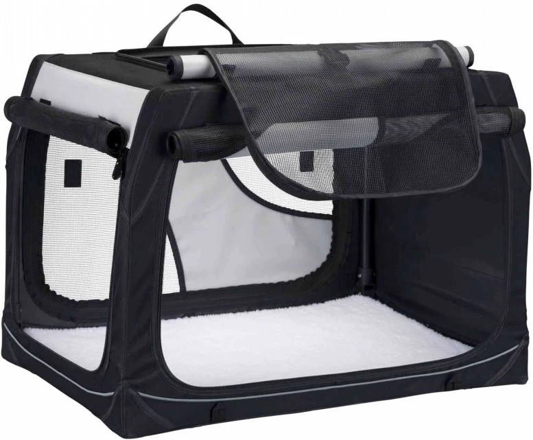 De Trixie Mobiele Bench Vario is een stevig bench, gemaakt van polyester en een metalen frame. De bench is aan 3 kanten te openen en beschikt daar ook over gaaswanden voor ventilatie. De onderkant van de Trixie Mobiel bench Vario beschikt over klittenband om de bench op zijn plaats te houden. Ook is het mogelijk om de bench vast te zetten door middel van de lussen waar haringen in kunnen. Aan de zijkant zit een zijvak en fleshouder. De polyester mat heeft een schapenvacht look. De Trixie Mobiele Bench Vario is inklapbaar om makkelijk mee te kunnen nemen.