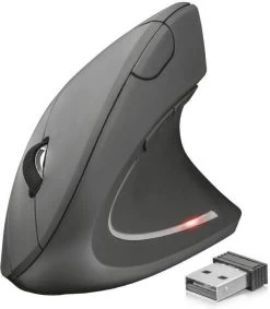 De Trust Verto draadlozee muis is gemaakt om vermoeidheid van armen en polsen te verminderen en je gedurende lange werkdagen het ultieme comfort te bieden. je hand blijft in een natuurlijke positie tijdens het gebruik van deze muis. Kies voor optimale controle en comfort! Dankzij zijn ergonomische ontwerp en comfortabele duimsteun, kun je moeiteloos uren lang thuis of op kantoor werken of studeren. De verticale indeling brengt je onderarm en pols in een natuurlijke positie, waardoor de spieren in je hand, pols en arm tot rust komen. De rubberen coating van deze muis zorgt ervoor dat je stevig grip houdt terwijl je langere perioden werkt. Belangrijkste kenmerken Werk lange perioden comfortabel door terwijl u arm- en polsklachten voorkomt Comfortabele duimsteun en rubberafwerking voor een perfecte grip Selectieknop voor snelheid (800/1200/1600 DPI) Opbergbare micro-USB-ontvanger 2 duimknoppen: Vorige/Volgende in uw browser Aan/uit-schakelaar.