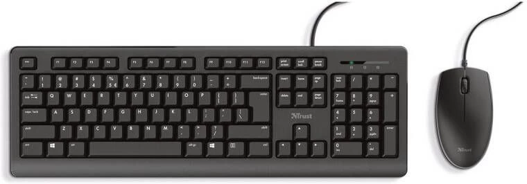 Stil toetsenbord en muisset om comfortabel te werken De volledige basis Er zijn toetsenborden in alle vormen en maten, maar wat als nou alleen de basisbenodigdheden nodig zijn? De Trust Primo doet precies dat. Het heeft een full-size layout, morsbestendige toetsen en het is in hoogte verstelbaar. Er wordt zelfs een simpele muis meegeleverd voor links- en rechtshandige gebruikers. De Primo doet precies wat nodig is. Comfort Een goed toetsenbord moet comfortabel te gebruiken zijn. De low-profile-toetsen en de uitklapbare voeten geven alle comfort die nodig is om op het werk te focussen. Zelfs morsen op de Primo is geen probleem, dankzij het morsbestendige ontwerp. Haal gewoon een verse bak koffie en werk verder. Gemakkelijk Plug de USB-kabel van 180cm lang in de pc en ga er tegenaan. Als er zoveel werk te doen is, dan zit niemand te wachten op het installeren van software of het instellen van macro’s. De Primo is een werkpaard dat iedereen in staat stelt om zich te concentreren op de.