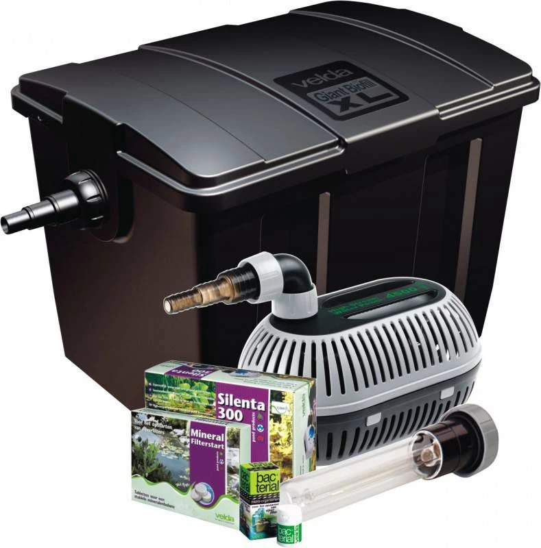 Giant Biofill XL doorstroomfilter set Kristalhelder en gezond water in uw grote vijver is onbetwistbaar met deze Giant Biofill XL set van Velda! Door de combinatie van de doorstroomfilter met UV-C unit, vijverpomp en luchtpomp bent u verzekerd van ee.