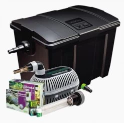 De Giant Biofill XL Set 15. De filtereenheid kan tijdens de winter op een vijver verwarmd worden. De vijverpomp Velda High Stream 15.000 behoort tot de beste vijverpompen wereldwijd. Door de hoge capaciteit is de vijverpomp bijzonder geschikt voor schuim effectfonteinen, stromen of watervallen. Met de bijgeleverde accessoires kunt u de High Stream 15. Levering bevat: 1 x Giant Biofill filter, 2 x UV-C unit 36 ​​W, 1 x High Stream 15.000 pomp, 1 x Silenta Pro Air Generator Set 300, bio ballen, grove groene Japanse mat, fijne blauwe Japanse mat.