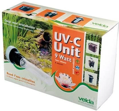 Velda UV C apparaat 9 watt Voorkom het troebel worden van aquarium- en vijverwater met deze UV-C unit van Velda! Deze professionele inbouw UV-C unit zorgt voor kristalhelder water en doodt door middel van de UV-straling groene zweefalgen en ziektekie.