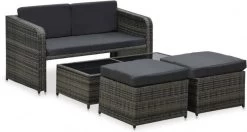 VidaXL 4 delige Loungeset Met Kussens Poly Rattan Antraciet