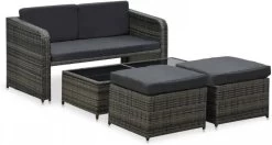 Deze stijlvolle en comfortabele poly rattan loungeset is een geweldige keuze voor al fresco dineren en relaxen in de achtertuin. Bestel vidaXL 4 delige Loungeset met kussens poly rattan antraciet online bij fonQ. Alle vidaXL Outdoor lounge uit voorraad leverbaar. Voor 23:59 besteld, uiterlijk 14 maart in huis.