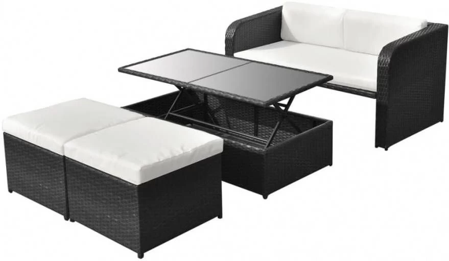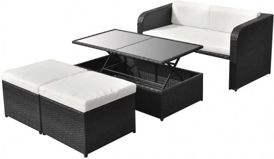 vidaXL 4-delige Loungeset met kussens poly rattan zwart