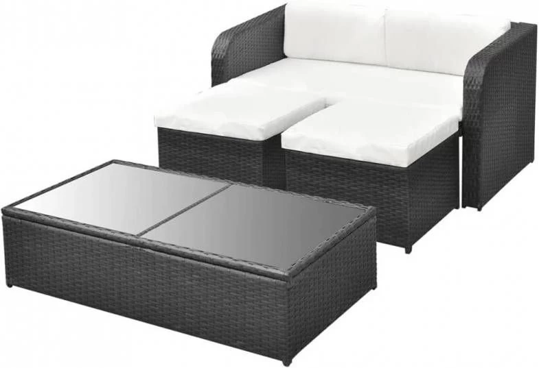 VidaXL 4 delige Loungeset Met Kussens Poly Rattan Zwart