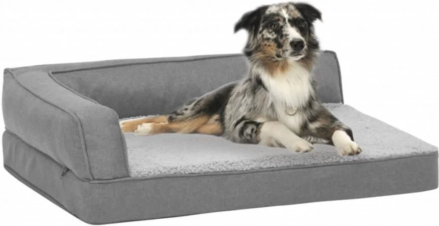 VidaXL Hondenbed Ergonomisch Linnen look 75×53 Cm Fleece Grijs